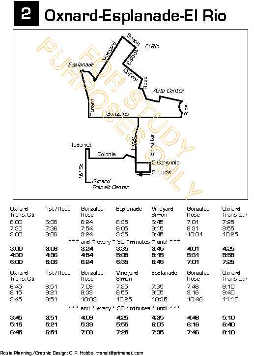 the "trunk", and 90-minute service is provided in alternating directions on the Esplanade-El Rio-Auto Center loop; if three buses could be operated on #2; 30/60 minute