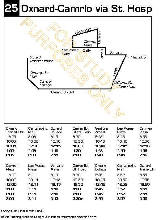 connect to Metrolink). #25 operates between Oxnard and Camarillo during the midday,