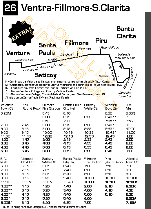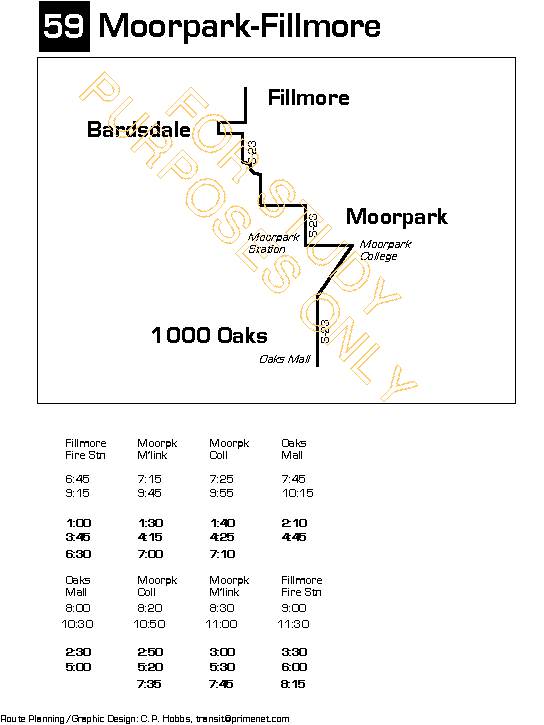 connects Fillmore and Bardsdale with Moorpark, Moorpark College and the Oaks Mall,