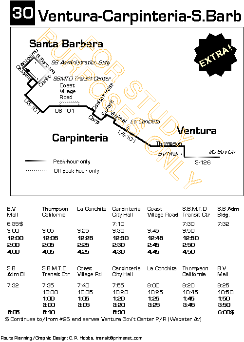 now.) #30 adds service to Carpinteria and several off-peak trips.