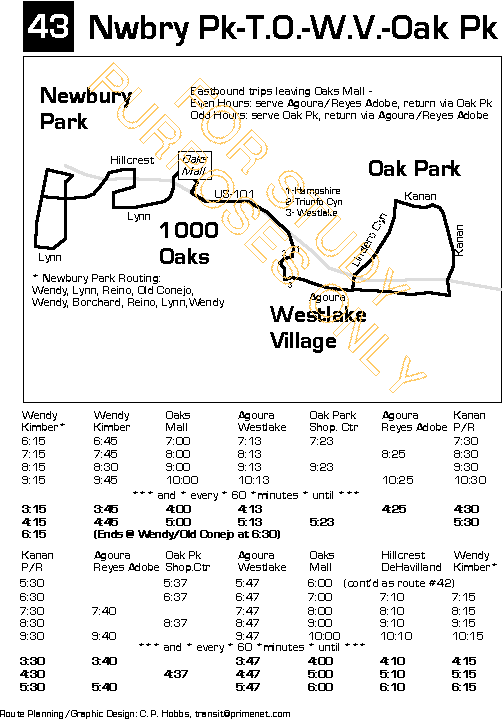 Park to Ventura in the evening; #42 provides service from Oak Park/Thousand Oaks